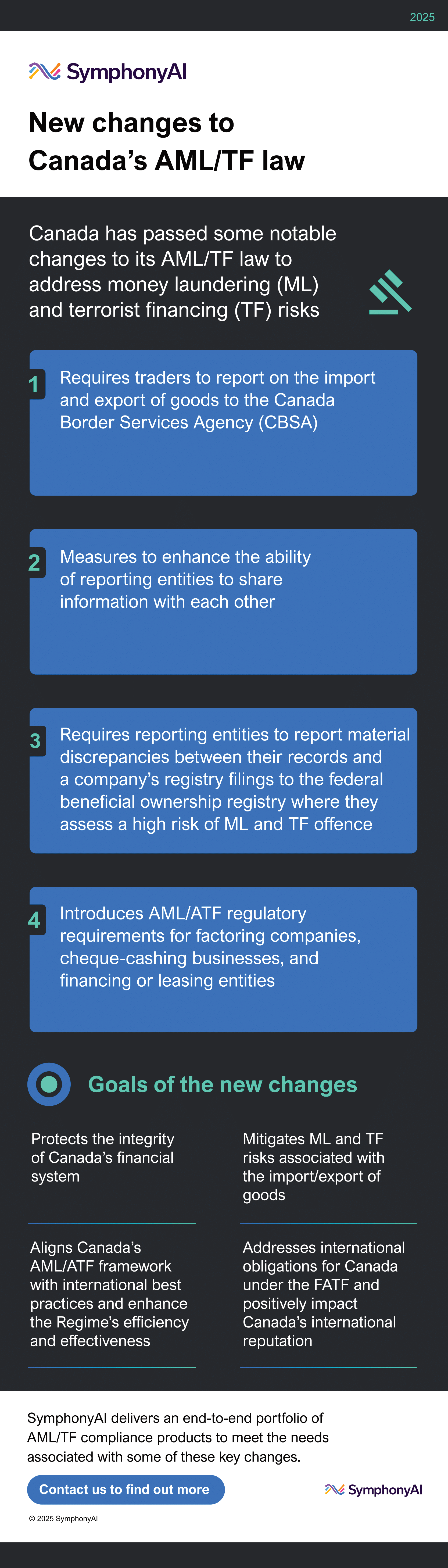 Canada has passed some notable changes to its AML/TF law to address money laundering (ML) and terrorist financing (TF) risks