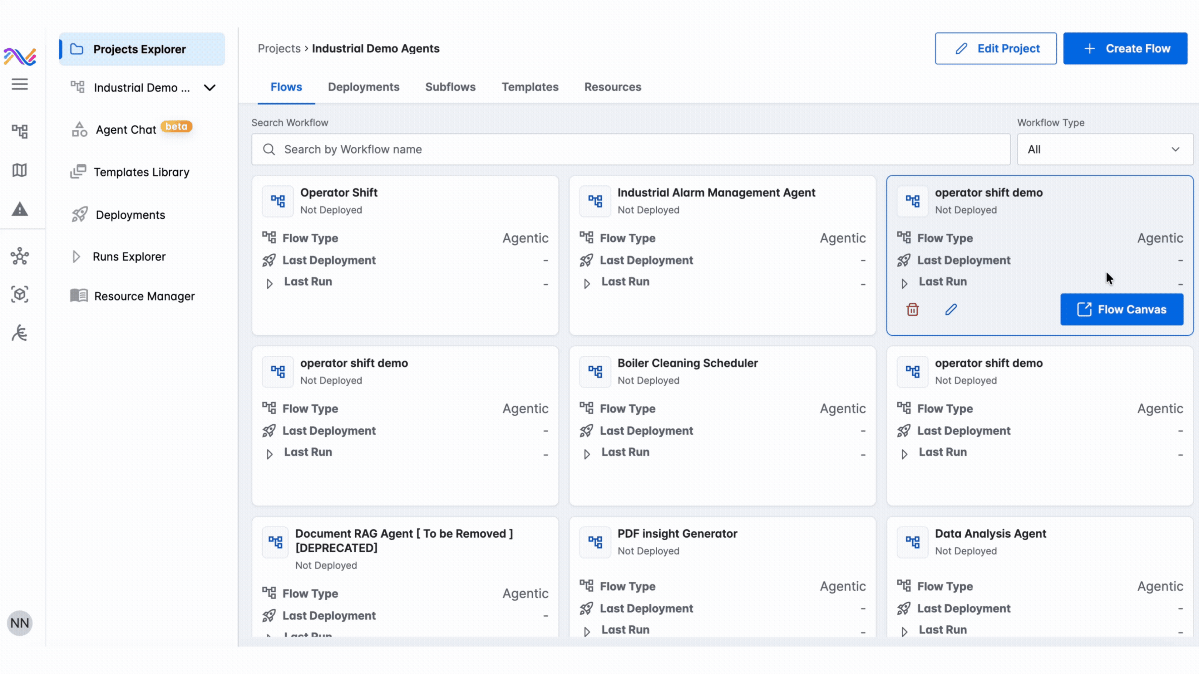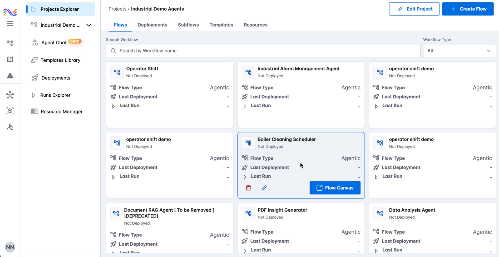 Active una biblioteca de más de 300 agentes preconstruidos, desde respondedores de alarmas inteligentes y analistas de causas raíz hasta planificadores de optimización y coordinadores de mantenimiento predictivo. Los agentes están listos para funcionar en entornos reales de fabricación, energía y procesos.