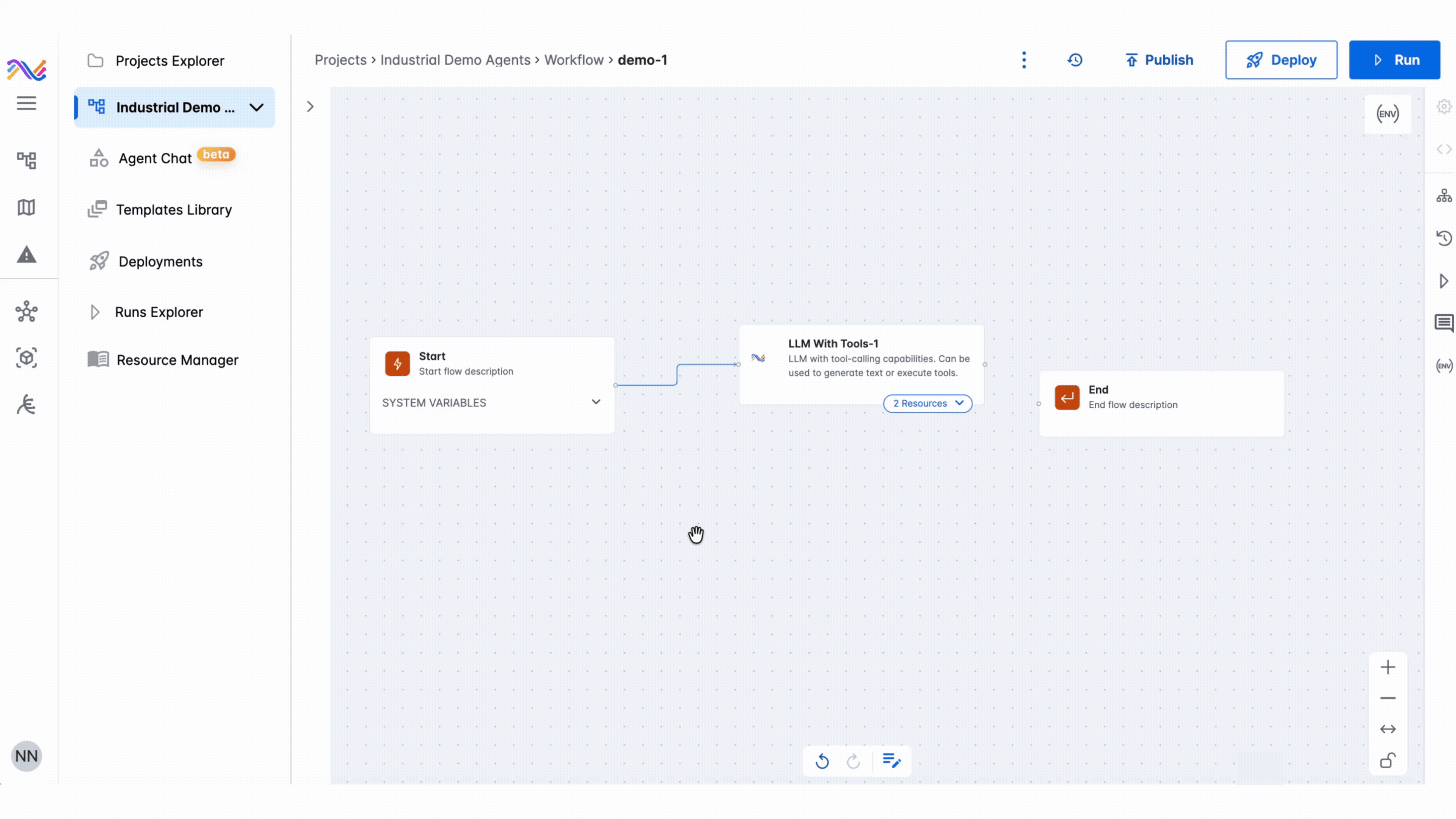 Organice fácilmente colaboraciones de agentes, en las que los agentes interactúan, intercambian información y coordinan dinámicamente acciones entre activos, equipos e instalaciones. Amplíe su automatización de agentes desde líneas individuales hasta operaciones globales, e inserte sin problemas la experiencia humana cuando sea necesario.