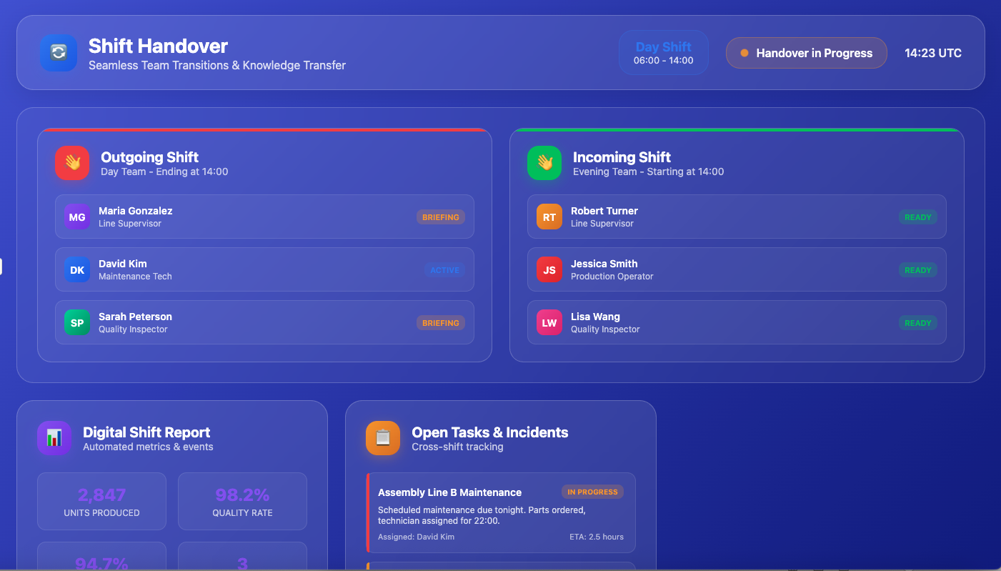 Faites correspondre les compétences des travailleurs aux exigences de la production en temps réel. Utilisez l'IA pour créer des plannings dynamiques qui maximisent la productivité tout en respectant les normes de sécurité et de qualité.