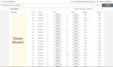 Flagler chose pneumonia because of its wide variation in practice created an area where the hospital felt it was falling short. Flagler’s data set included 1,573 patients who were discharged with pneumonia as principal diagnosis. The data went back to 2014.
