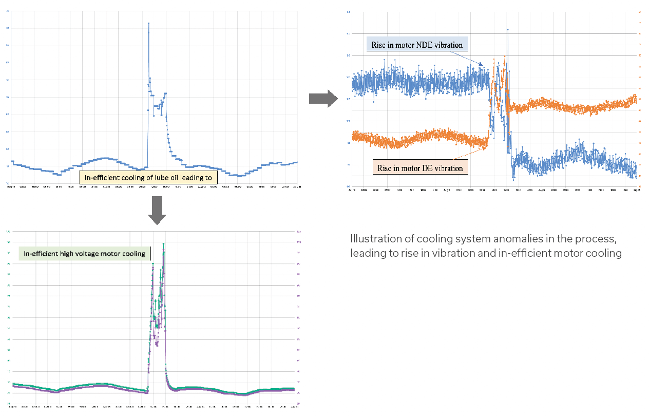 Sequence of such upsets in the process led to trip of the high voltage motor and the driving compressor, inviting un-planned downtime. Therefore, an early warning system was required that could produce necessary causes and actionable recommendations that would lead to immediate and longer term mitigation of reliability issues.